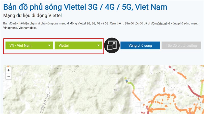 Bước 1: Bạn hãy truy cập vào đường link bên dưới để tới với trang web nperf > Hãy chọn Việt nam và nhà mạng bạn đang dùng để kiểm tra.