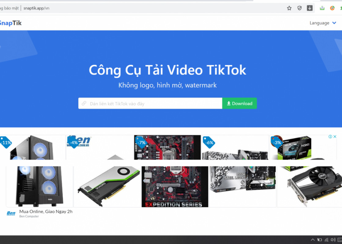 Bước 4: Truy cập trang web Snaptik trên Google Chrome theo đường link: http://snaptik.app/vn