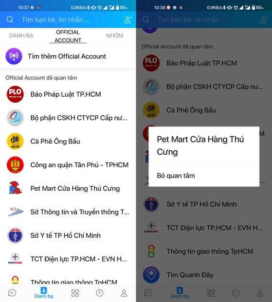 Tuy nhiên, theo thời gian, việc quan tâm quá nhiều trang Zalo OA sẽ khiến nội dung trên bảng tin bị lộn xộn. Làm thế nào để bỏ quan tâm hàng loạt trang Zalo OA không cần thiết?