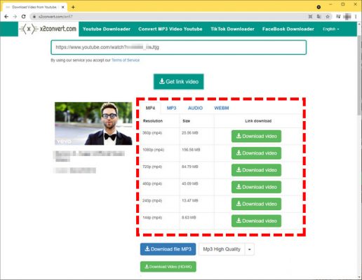 Bước 5: Tùy chọn chất lượng video mà bạn muốn tải và nhấn nút Download Video máu xanh tương ứng bên phải.