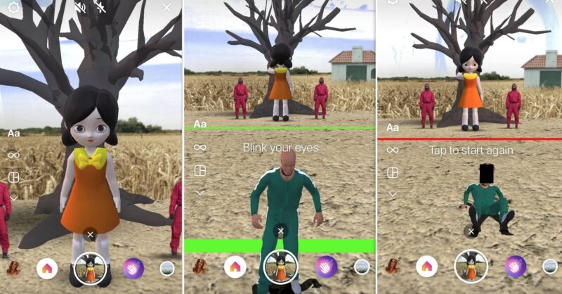 Đây chính là một filter mới mà Instagram vừa ra mắt cho phép bạn chơi trò chơi Đèn xanh đèn đỏ trứ danh trong bộ phim Squid Game đang làm mưa làm gió trên nền tảng xem phim Netflix.